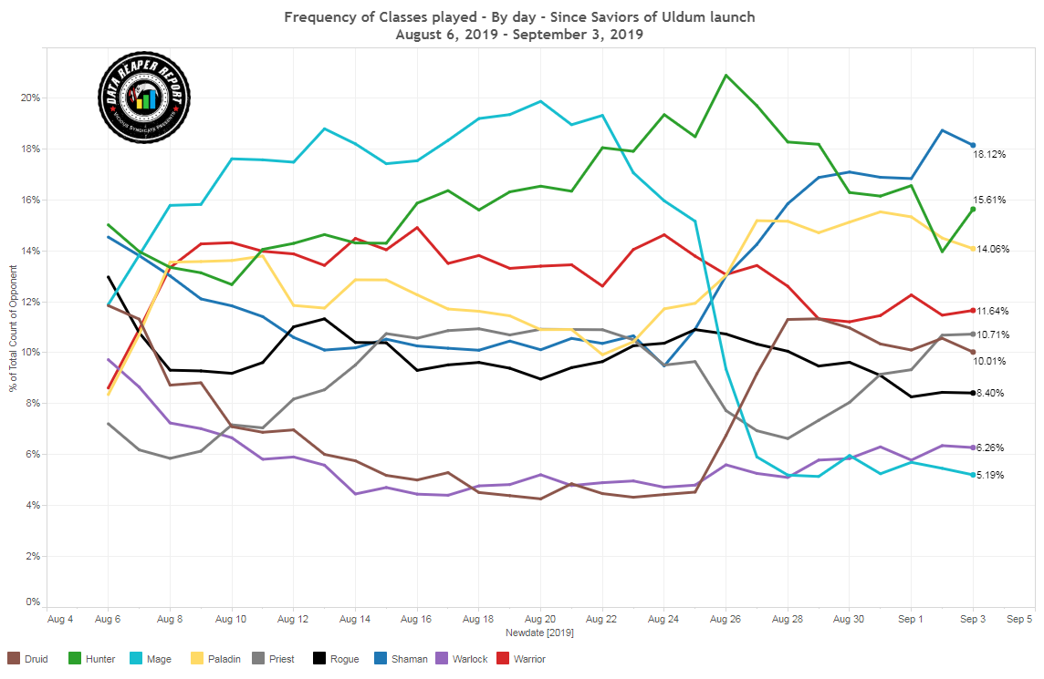 Популярность классов по дням с момента выхода дополнения "Спасители Ульдума"