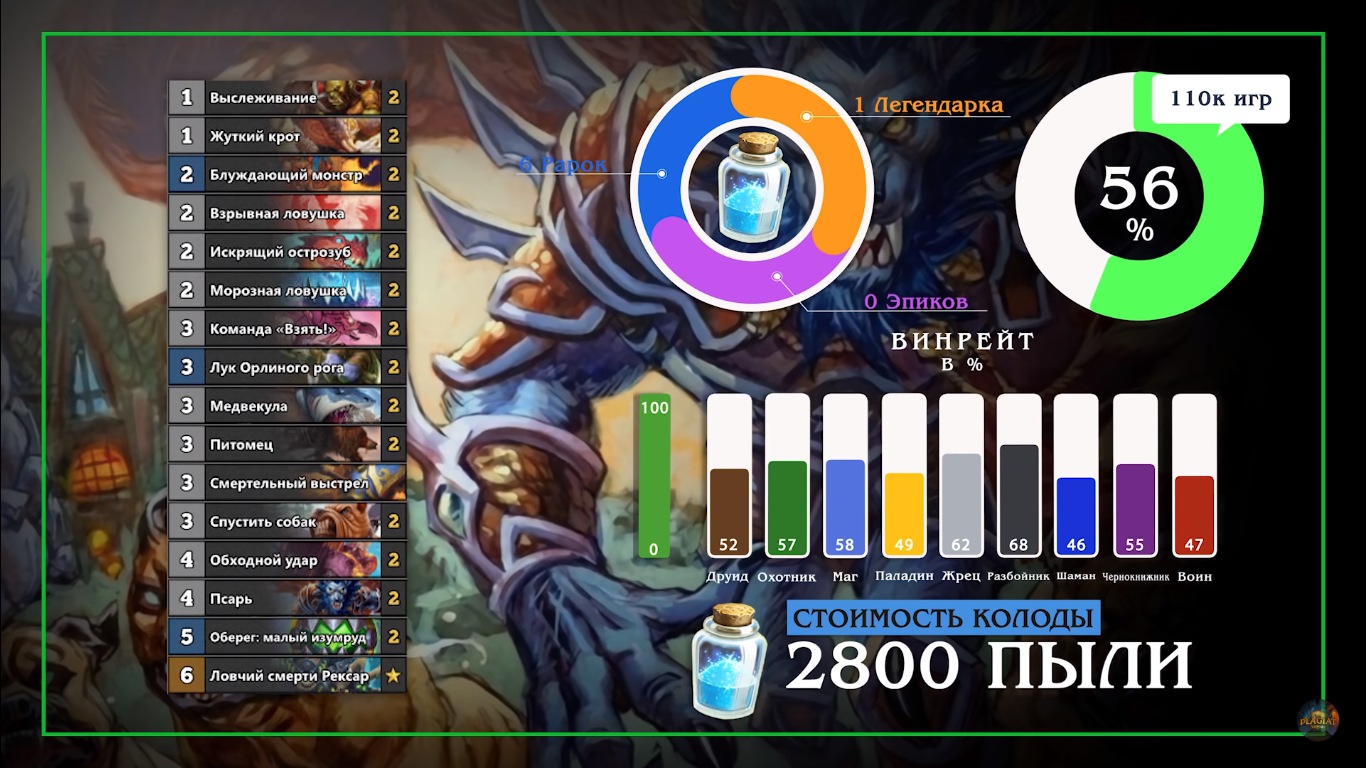 Игрок Plag1at подобрал для вас 5 лучших дешевых и доступных колод для взятия легенды в Hearthstone - Ведьмин Лес в этом и начале следующего сезона! Вас ожидают 5 колод для разных классов со своим уникальным геймплеем и приемлемой стоимостью поэтому собрать хотя бы одну из них сможет каждый бывалый игрок.